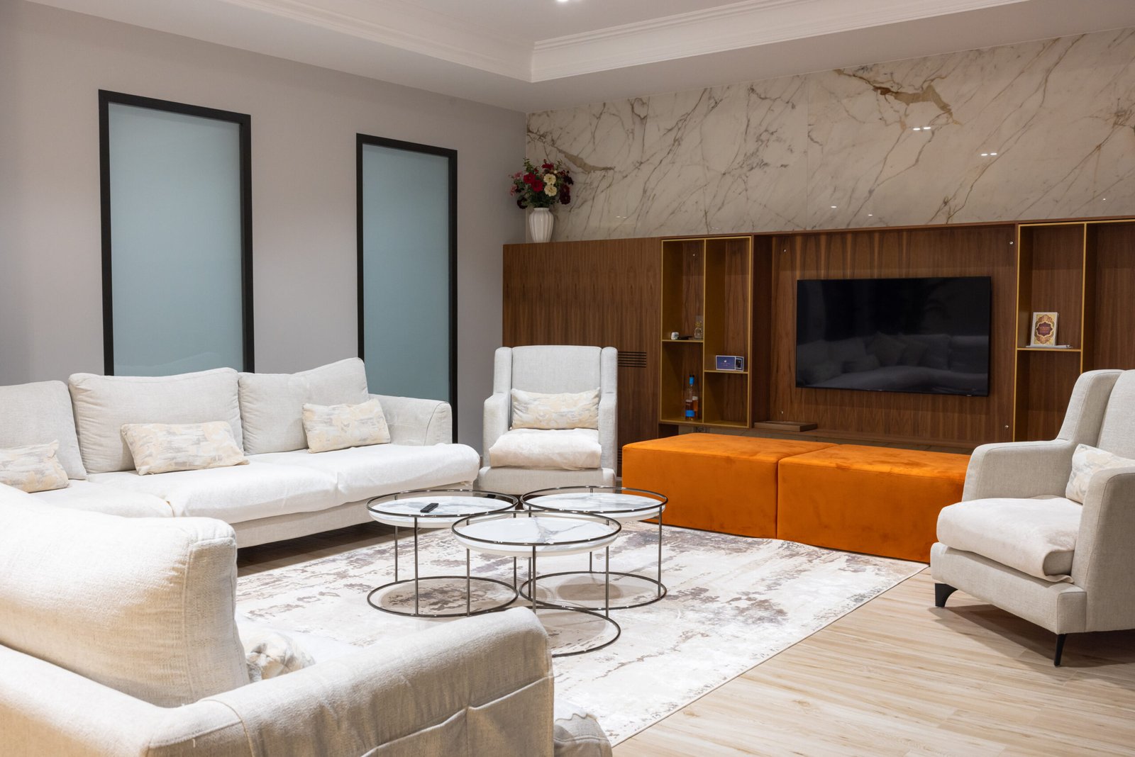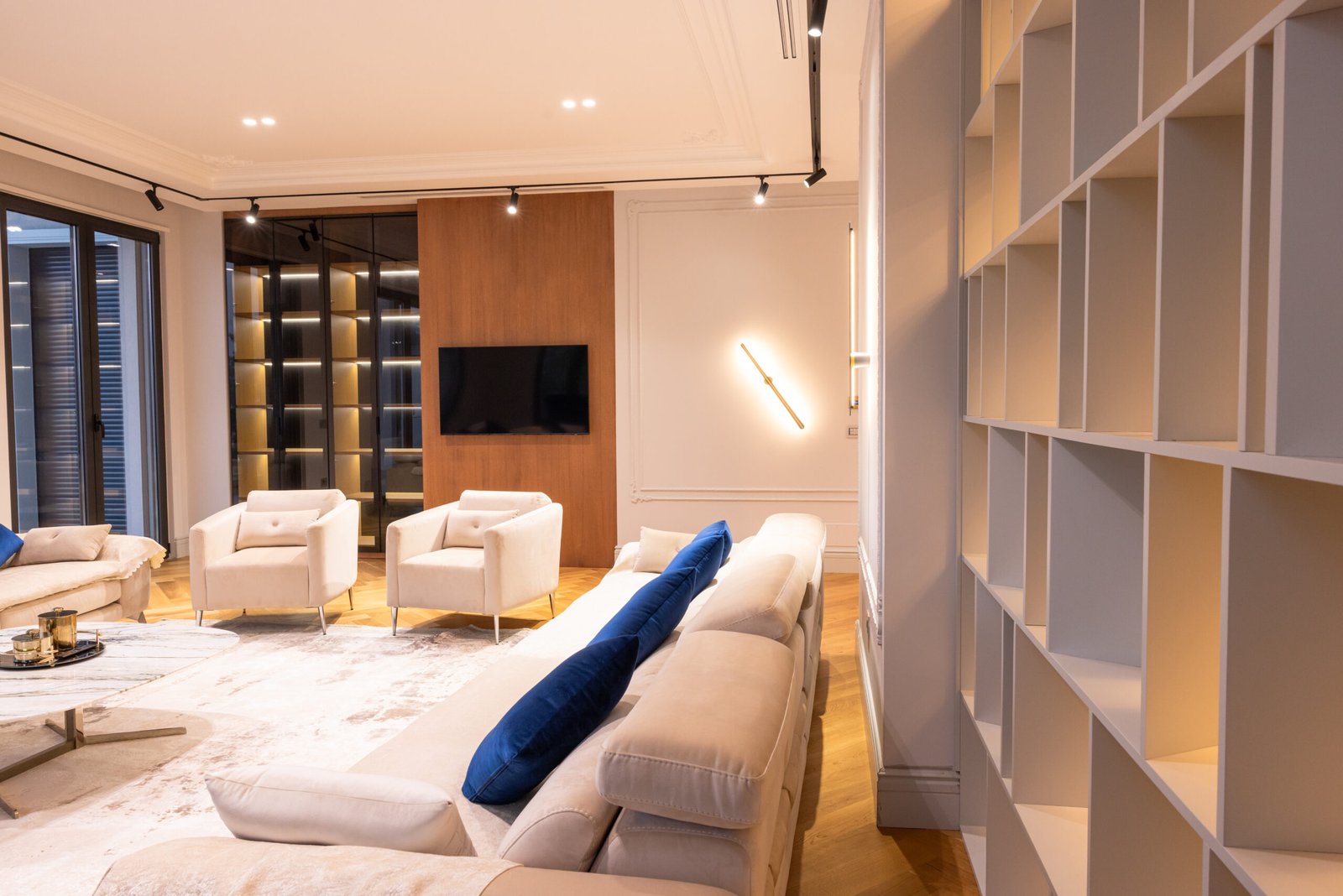 Mobiljet, njësitë murale, raftet dhe detajet e integruara janë plotësisht të personalizueshme në përmasa, materiale dhe përfundime. Me planimetri të menduara, materiale premium dhe mjeshtëri precize, këto hapësira ndenjeje përshtaten me stile të ndryshme jetese duke ruajtur një dizajn të përjetshëm dhe koheziv.